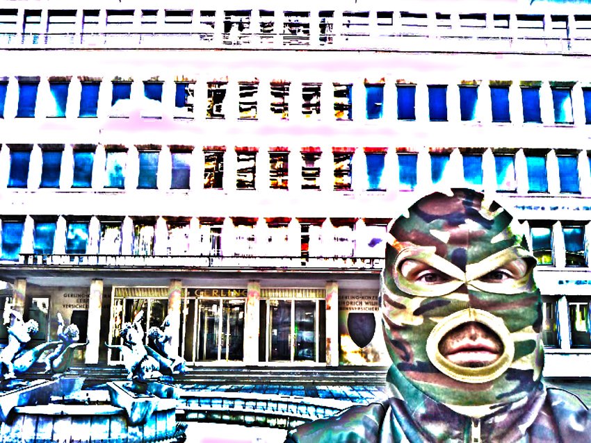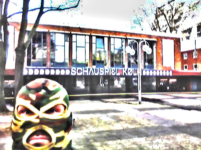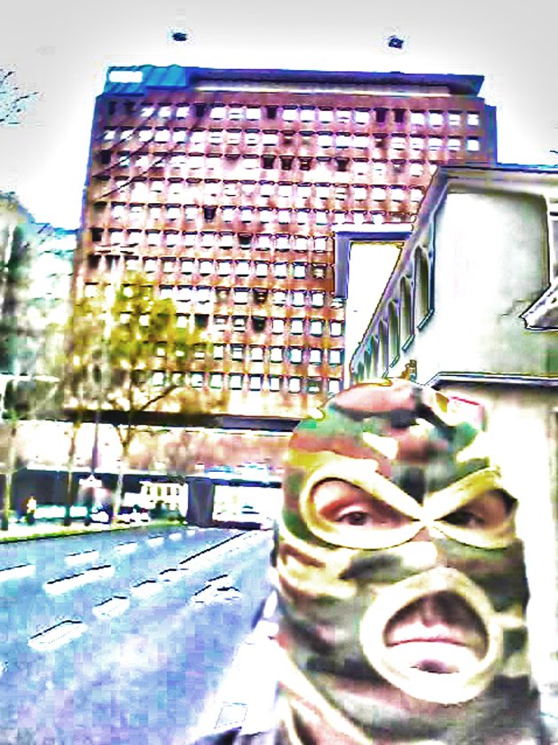 The resulting images show a distorted, surreal look at different places and structures from the city of Cologne. Collectively shaped structures of society are reflected. From each image there is a certain basic threat haling which is manifested in the presence of the terrorist: The rigorous military discipline of the terrorist and his aim to find a peaceful place. Over the displayed aggressiveness and affirmation of violence of the terrorist, his inner struggle turns to the outside and is finally brought to an urban environment.